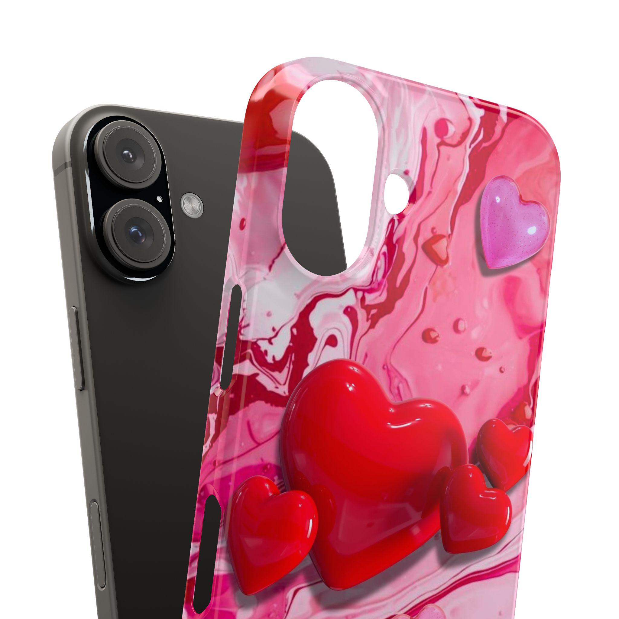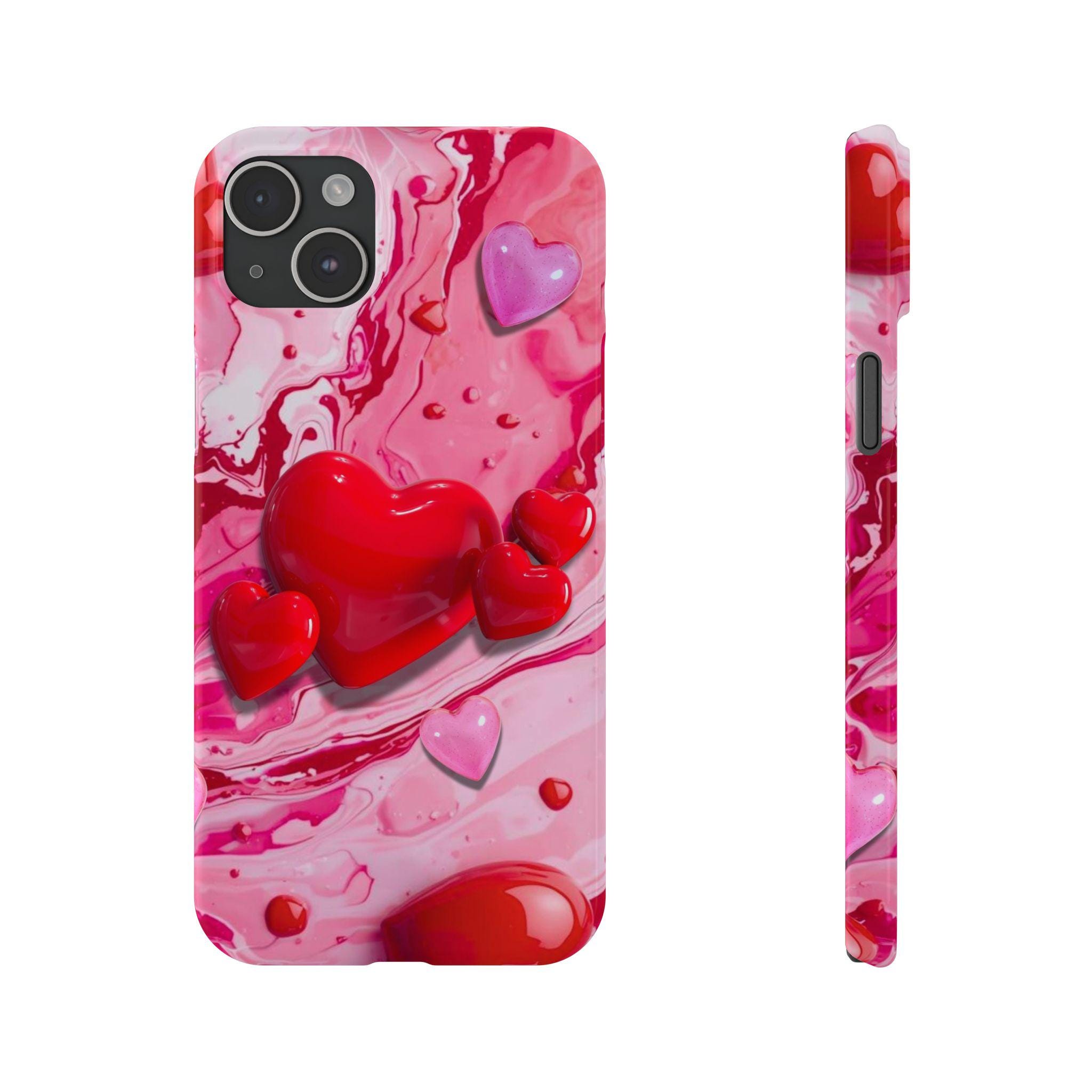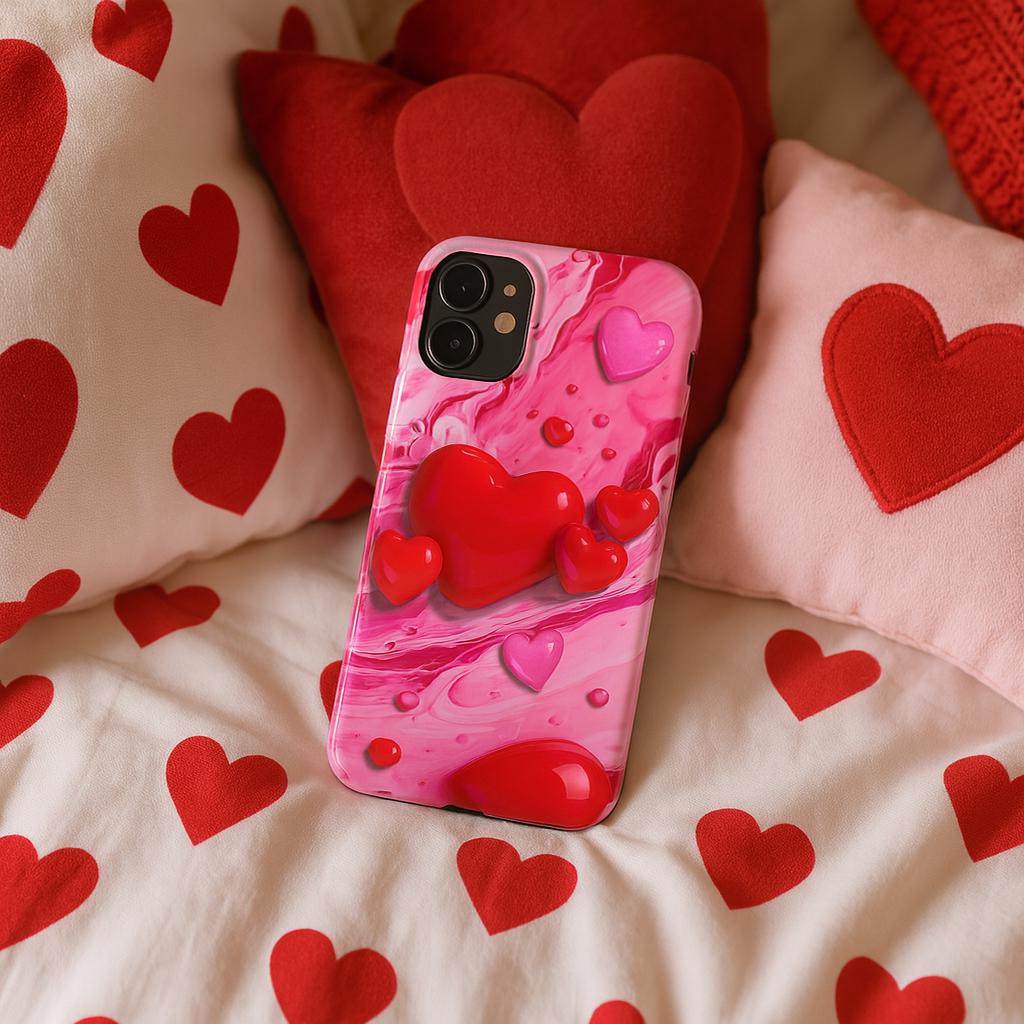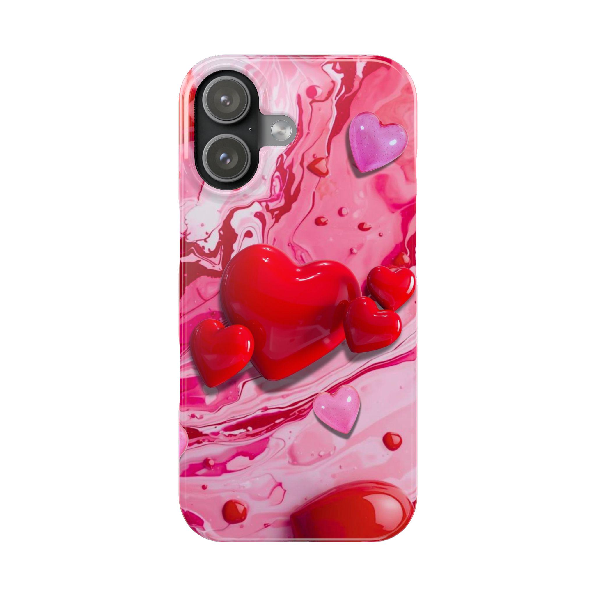 Bright, glossy, and playful — this slim phone case wraps your device in a swirl of pinks and candy-red hearts that catch the light. The smooth, high-gloss finish makes the colors pop, while the thin Lexan shell keeps the silhouette sleek and pocket-friendly. It feels cheerful in your hand and brings a bit of bubbly, romantic energy to everyday moments — scrolling, photos, and quick calls. Built to resist outdoor fading and small abrasions, it stays vivid through daily wear and supports wireless charging so you can keep a tidy nightstand. Slip it on for date nights, valentine vibes, or anytime you want your phone to look a little more joyful.