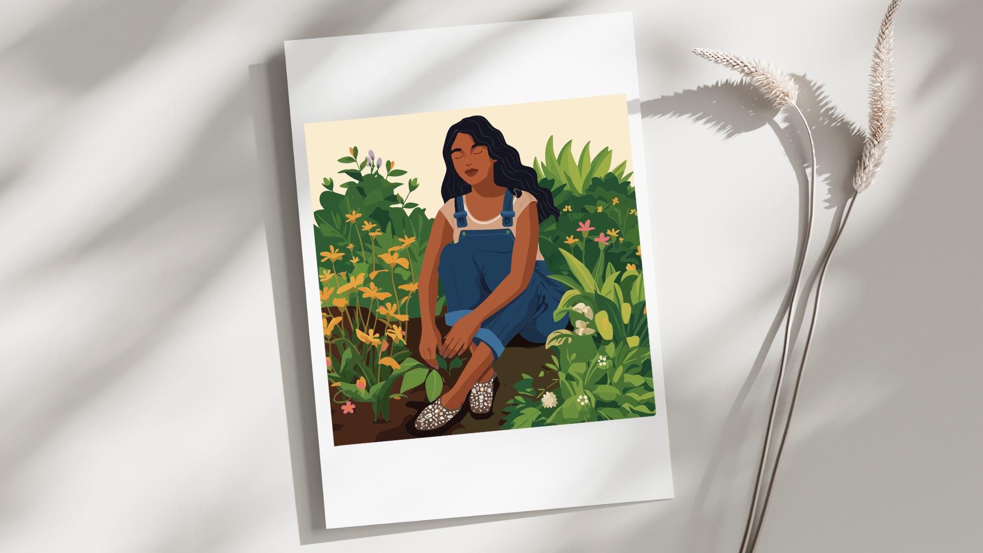 Garden Girl SVG – Peaceful Nature Scene, Eco Lifestyle Vector for Cricut & Silhouette